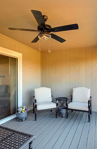 Installation of IP-rated weatherproof ceiling fans for decks, patios, and verandas that can withstand outdoor conditions and humidity.